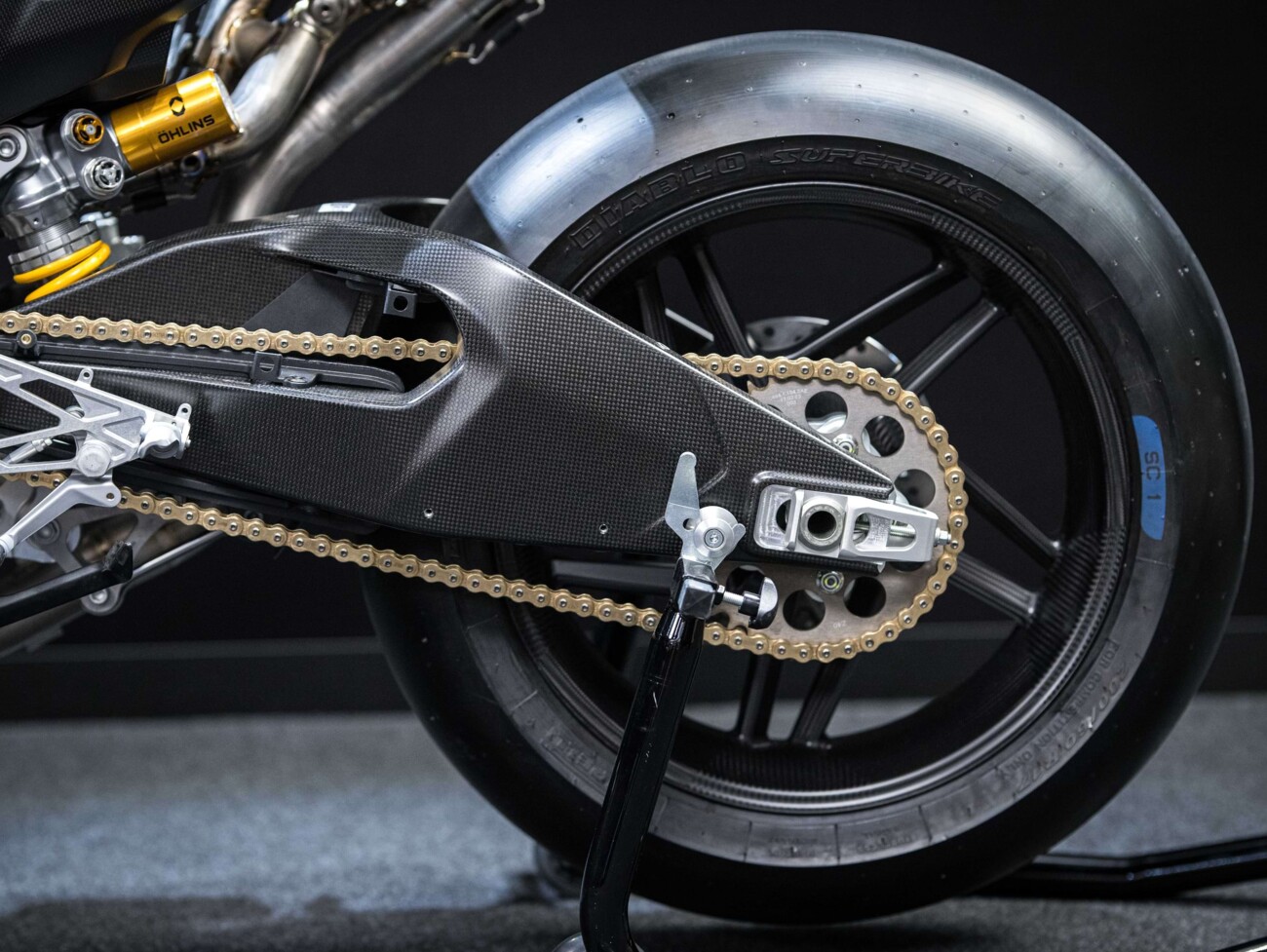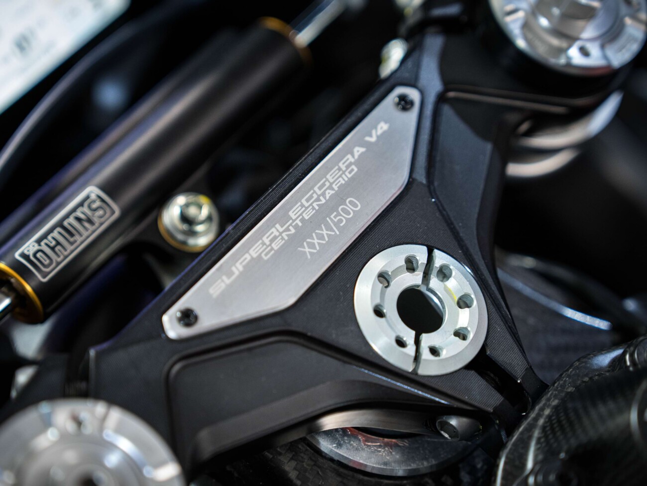 Die Ducati Superleggera V4 Centenario ist ein Motorrad, bei der jedes einzelne Bauteil als Solist glänzt, um im großen Ganzen eine mechanische Oper zu inszenieren. Es ist die italienische Hingabe zur »schönen Zutat«, die hier ihren Zenit findet, eine Liebe zum Detail, die über das Vernünftige hinausgeht – und die trotz dieser extremen Leistungswerte vollständig homologiert und für die Straße zugelassen ist.