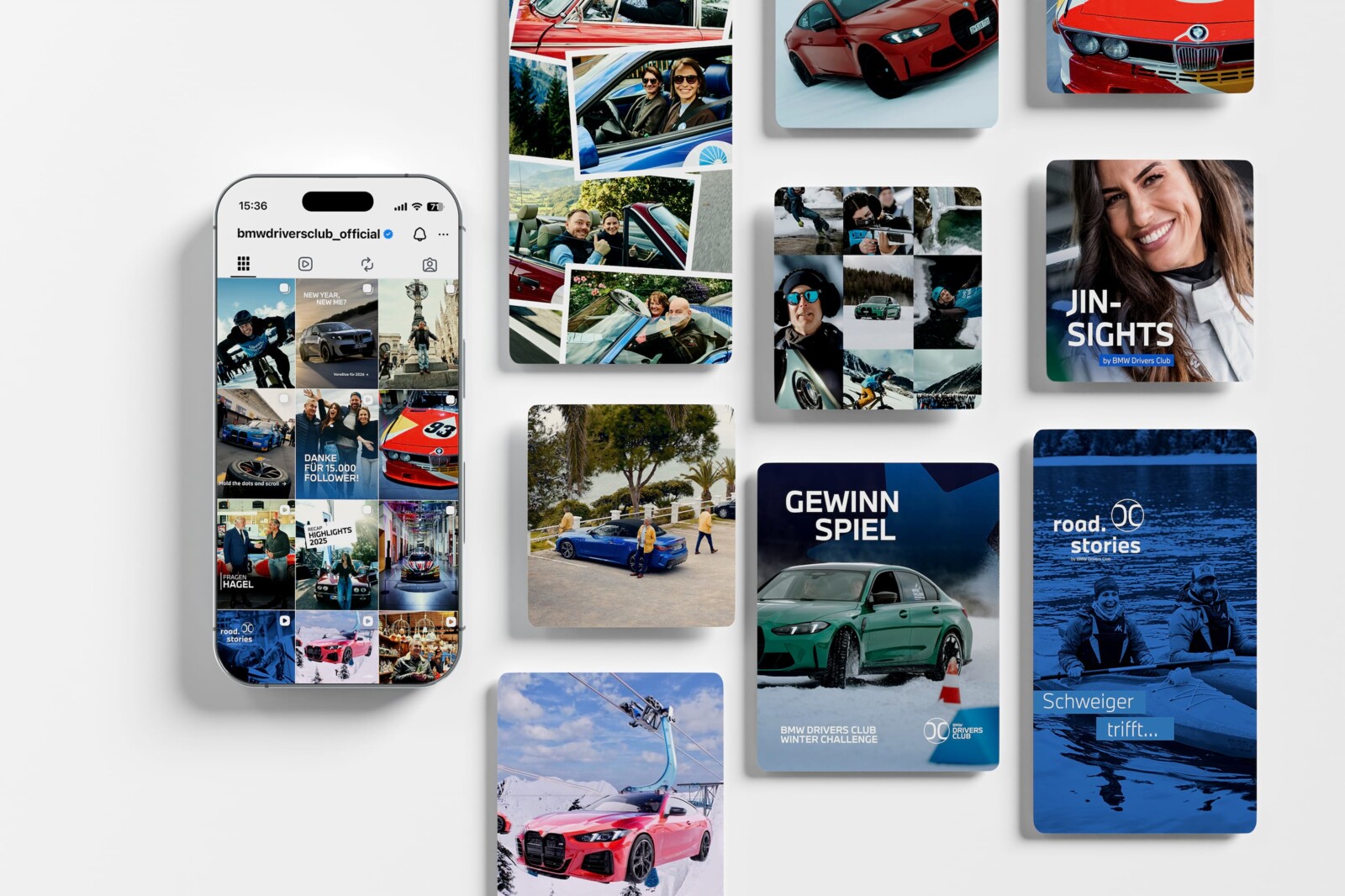 Das Format road.stories by BMW Drivers Club x ramp verbindet die Freude am Fahren mit spannenden Menschen aus den Bereichen Kunst, Kultur und Motorsport. Immer inspirierend, immer unterhaltsam. Und immer mittendrin: die BMW Drivers Club Champs Wladimir Kaminer, Andreas Schweiger sowie ganz neu seit 2025 – Magdalena Neuner.