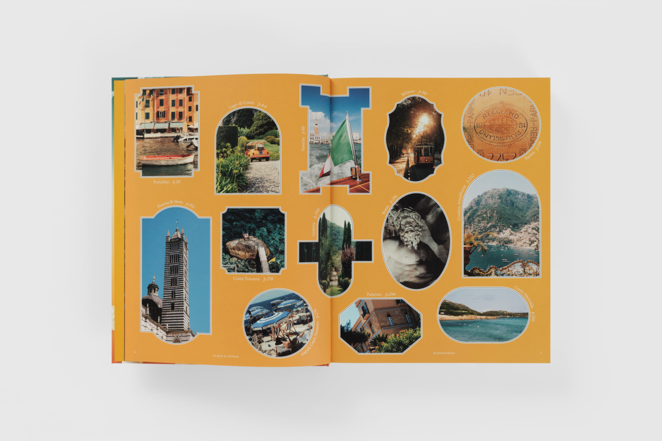 Auch gestalterisch setzt Buongiorno auf große Wirkung: gedruckt in Italien, im großzügigen Format, mit Soft-Touch-Cover und farbintensivem Leinen-Schuber in Acqua-di-Parma-Gelb.