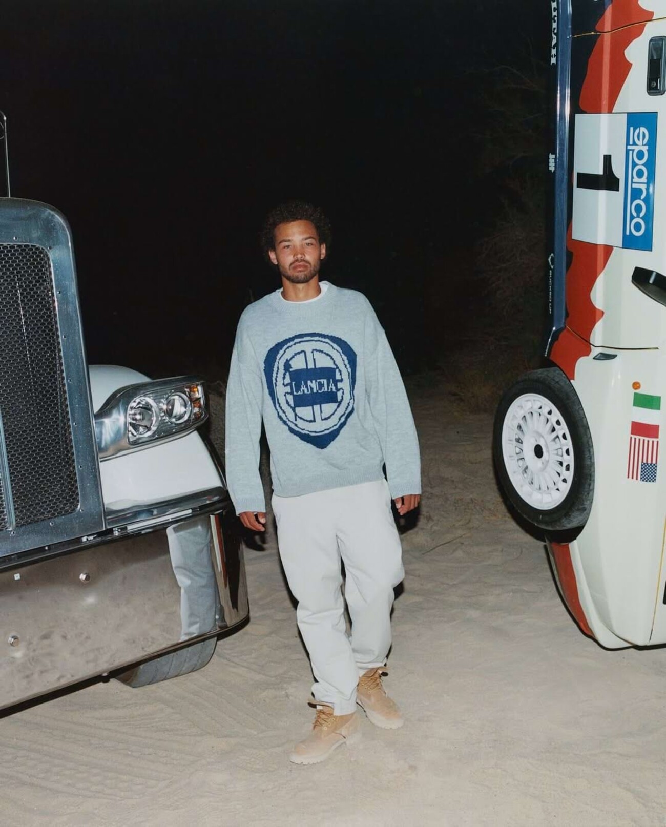 Neue Perspektiven gibt es aber nicht nur auf das Auto, sondern auch das Lancia-Logo und das Sport-Erbe der Marke. Die Kollektion umfasst dabei Hoodies, Pullover, T-Shirts und Caps – alle mit offiziellen Logos und liebevollen Motorsport-Details. Zum Beispiel wäre hier das T-Shirt mit den Rennwagen Beta Montecarlo, 037, LC2 und Delta HF – oder der Schlüsselanhänger, den das legendäre HF-Logo mit dem roten Elefanten ziert. Eine Tote-Bag gibt es auch, unser Favorit aber ist die Mechaniker-Jacke mit Druckköpfen und wechselbarem Logo auf der Rückseite. Weshalb? Weil sie die guten alten Zeiten aufleben lässt. Und: Selbst am Auto schrauben ist sexy. Sofern man das gute Stück dafür nicht gerade am Kran in die Garage bringen muss.