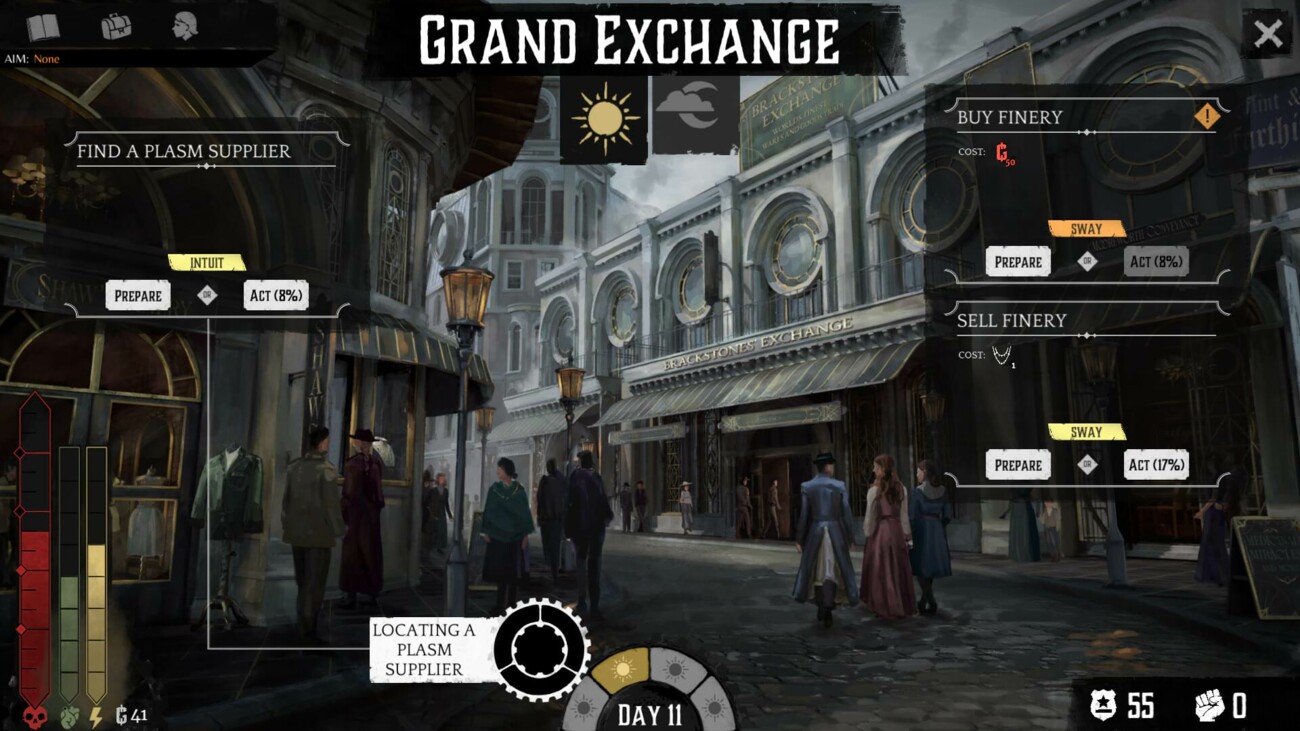 Man stelle sich »Citizen Sleeper« und »Dishonored« auf einem Schwarzmarkt vor, dabei kommt »Duskpunk« heraus. Sie spielen einen Deserteur in einer Stadt, die ihre Energie buchstäblich aus Friedhöfen zieht. Hier wird alles in Würfeln gemessen: Arbeit, Vertrauen, sogar Albträume.