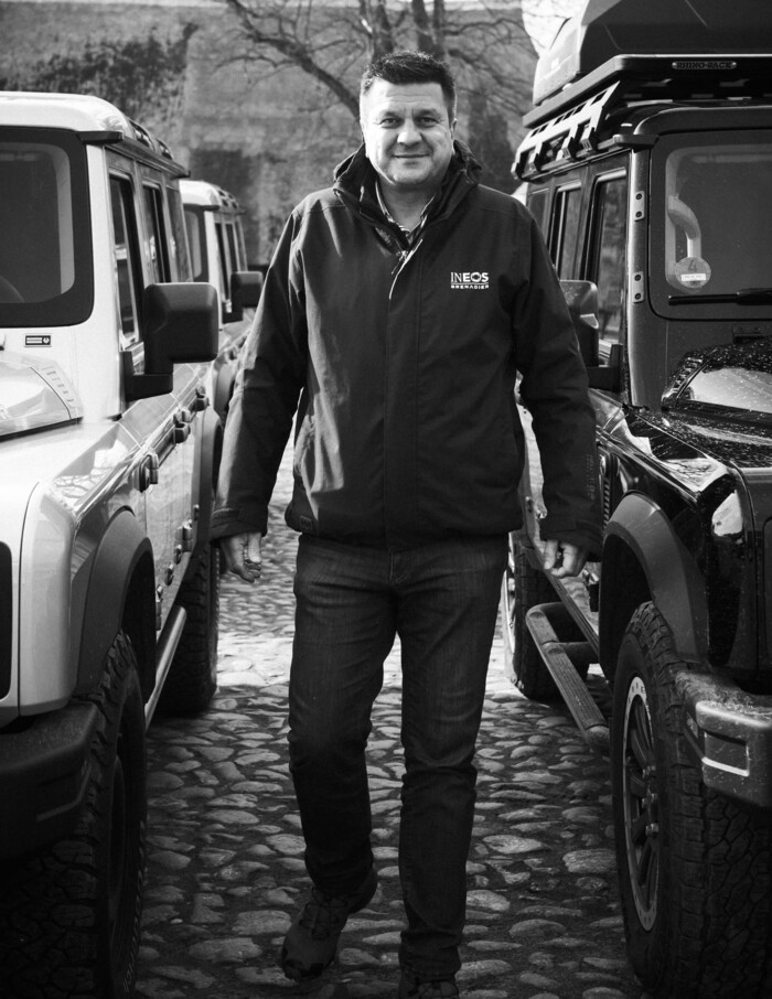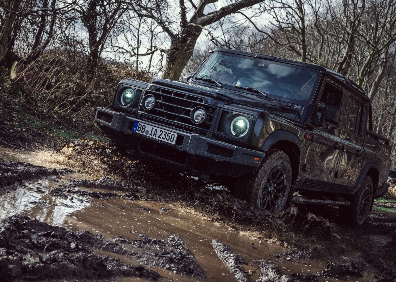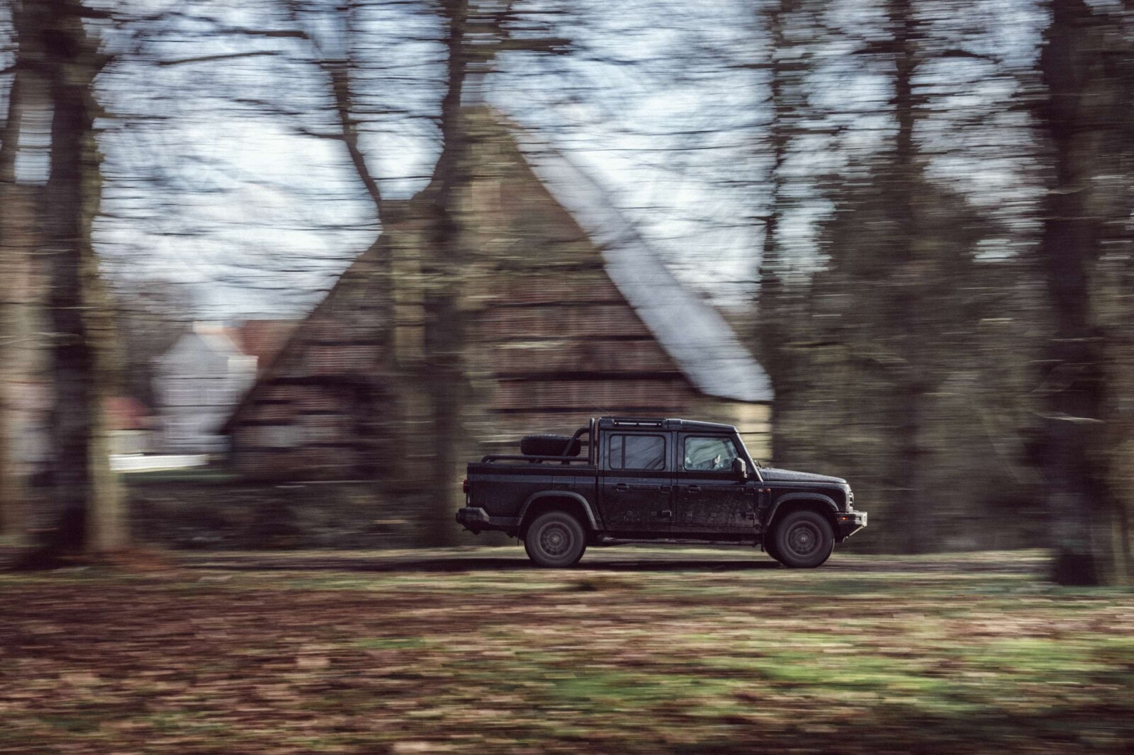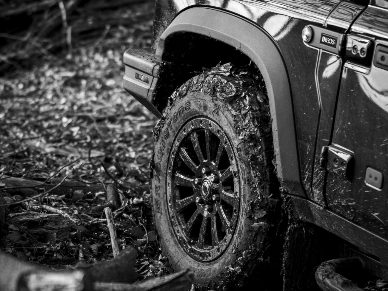 Wir biegen ein in den Wald. »Da runter«, meint Peschel nur. Okay. Mit viel Fantasie lässt sich so etwas wie ein Weg zwischen den Bäumen finden. Der Grenadier zieht langsam seine Bahn durch den Wald. Doch dann halten wir an. »Was ist los«, fragt Peschel. Gute Frage. Ich sage ihm, dass das hier für mich wie eine Sackgasse aussieht und ob ich hier vielleicht besser wenden und zurück sollte. Peschel deutet mit dem Arm direkt nach vorne, den Hügel hinauf, zwischen den stattlichen Stämmen von Laubbäumen hindurch, was so viel bedeuten soll wie: da entlang! Mehr als ein: »Ah ja, wenn man den Weg vor lauter Bäumen nicht mehr sieht …« fällt mir nicht ein. Peschel instruiert: »Halte dich hier leicht rechts, dann nach links oben ziehen.« - »Und wieder konstant Gas?« Peschel nickt. Dann erwähnt er beiläufig, dass wir bei der Bereifung nicht das grobe Stollenwerk für hartes Offraod drauf haben, sondern die straßenoptimierte Kompromiss-Variante. »Aber das macht nichts.« Soso.
