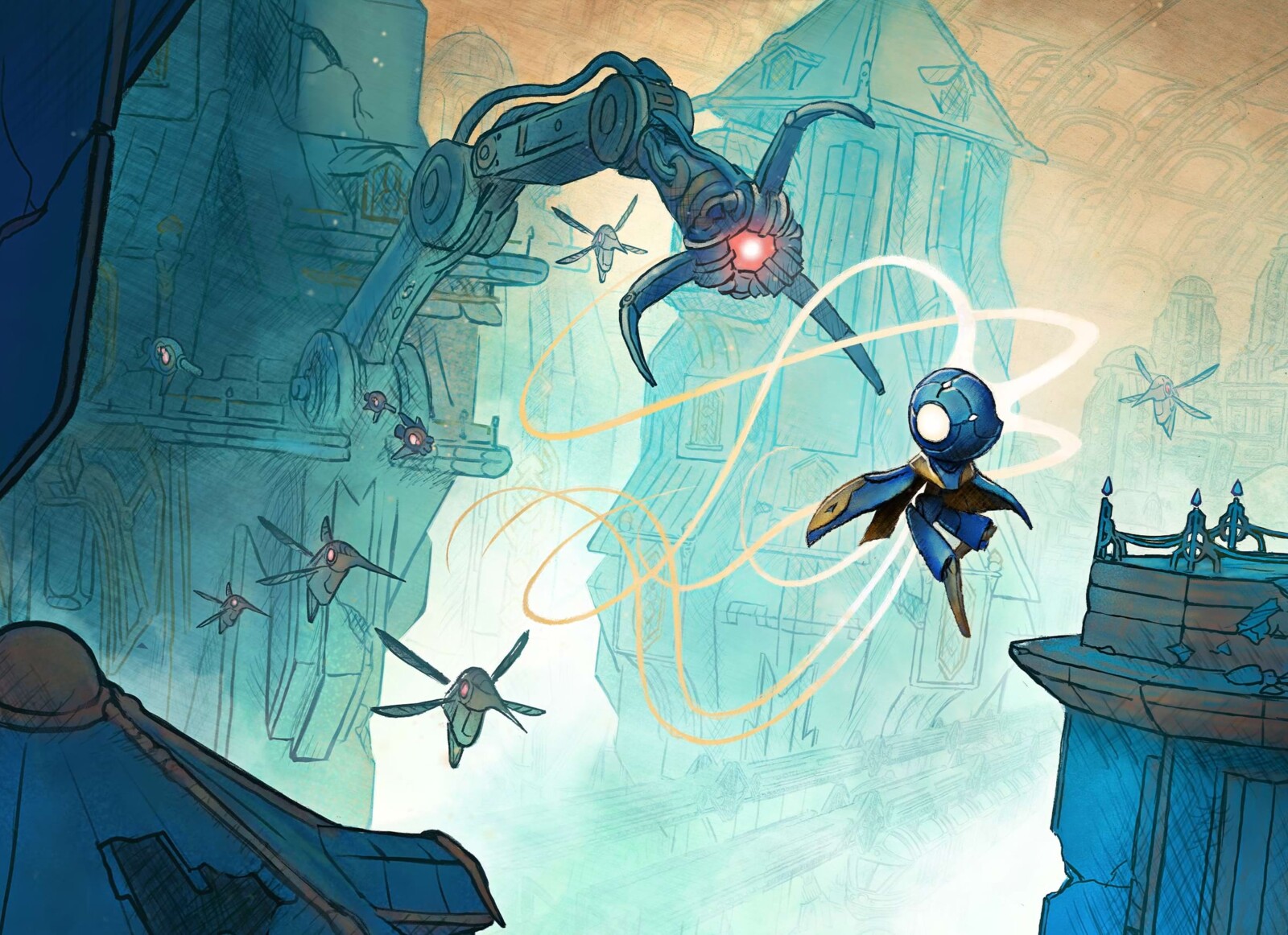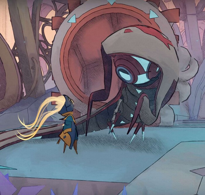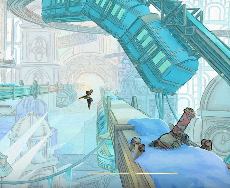 Die Welt von »Mio: Memories in Orbit« wirkt von Beginn an wie ein Ort, der schon bessere Zeiten gesehen hat. Farben verlaufen weich ineinander, Konturen bleiben bewusst unscharf, als würde alles durch eine Erinnerungsschicht betrachtet. Der Aquarell-Look verleiht den Umgebungen eine fragile Schönheit, die mehr beruhigt als beeindruckt. Mal führt der Weg durch eine üppige Oase, dann wieder durch vereiste Höhlen oder überwucherte, dunklere Areale. Abwechslung ist reichlich vorhanden, Orientierung nicht immer. Und genau das ist Teil der Erfahrung.