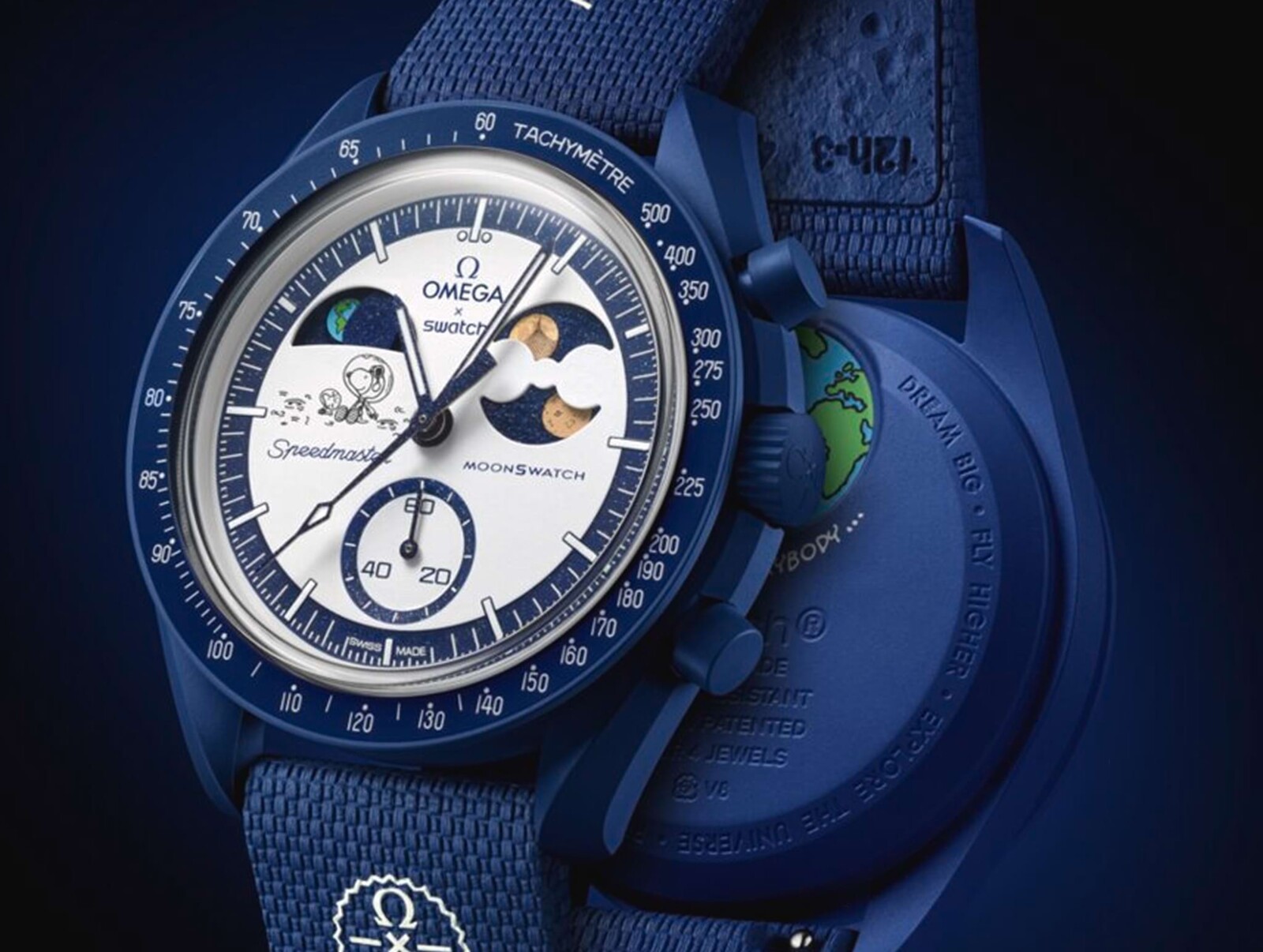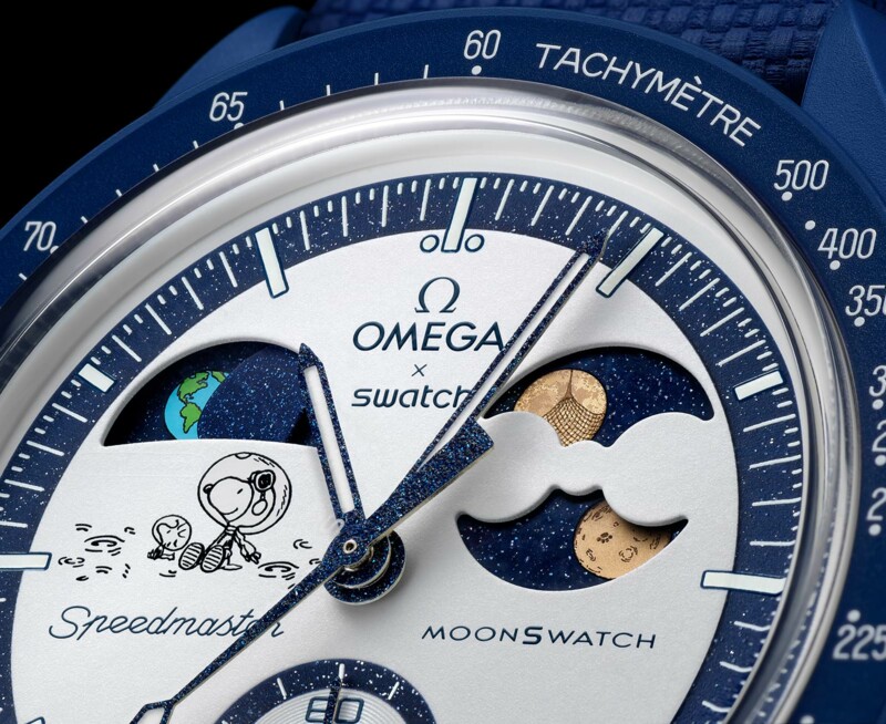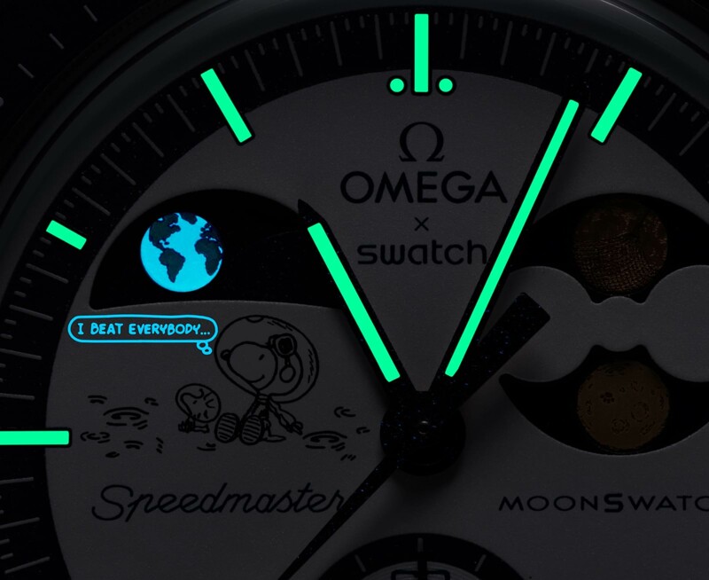 Die MoonSwatch »Mission to Earthphase« ist aus dem von Swatch patentierten, innovativen Bioceramic gefertigt, einer Mischung aus Keramik und biobasierten, aus Rizinusöl gewonnenen Materialien, das robuste Armband besteht aus Kautschuk.