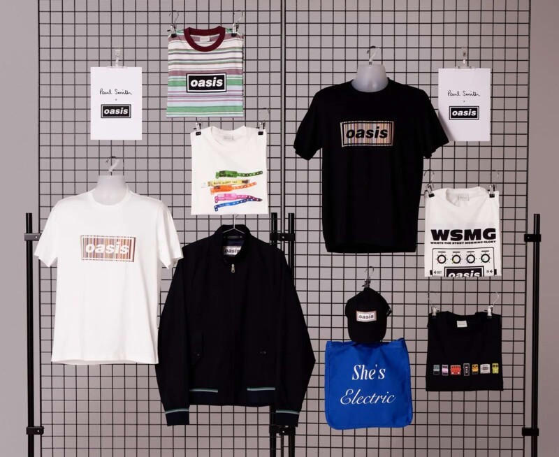 Die limitierte Kollektion vereint ikonische 90er-Elemente, Songtitel-Prints und das charakteristische Oasis-Logo in Paul Smiths legendärer Farbstreifen-Ästhetik – von grafischen T-Shirts über Caps bis hin zu Jacken und Accessoires.