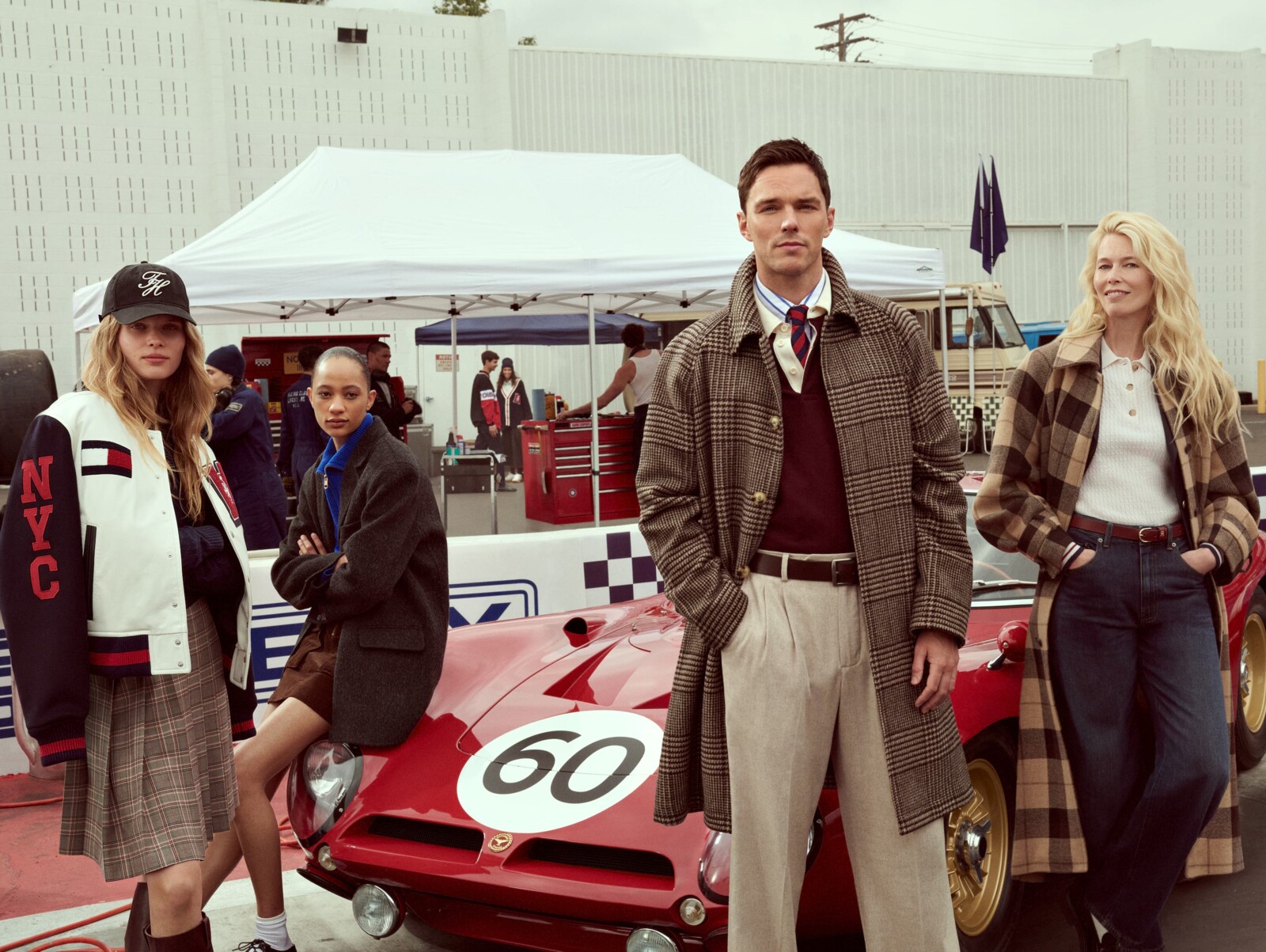Tommy Hilfiger bringt den Spirit des Rennsports auf den Laufsteg – mit Stars wie Nicholas Hoult und Claudia Schiffer vor der Kamera von Glen Luchford. Dabei wird der »Preppy«-Style neu interpretiert – cool, schnell und ikonisch.