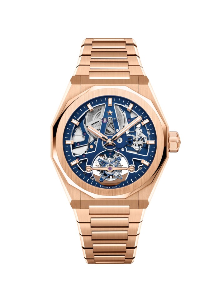 Was ist die Essenz von Zeit? Mit der ersten skelettierten Tourbillon in der DEFY Skyline Linie ermöglicht Zenith Watches einen neuen Blickwinkel in schimmerndem Roségold. Mechanische Komplexität erhält mit dieser Uhr sozusagen eine architektonische Präsenz, wobei die Veredelungen der blauen PVD-Beschichtungen für optische Spannungsmomente sorgen. Und weil diese Uhr in dieser Ausführung etwas ganz besonders ist, wurde die Stückzahl auf 50 Exemplare limitiert.
