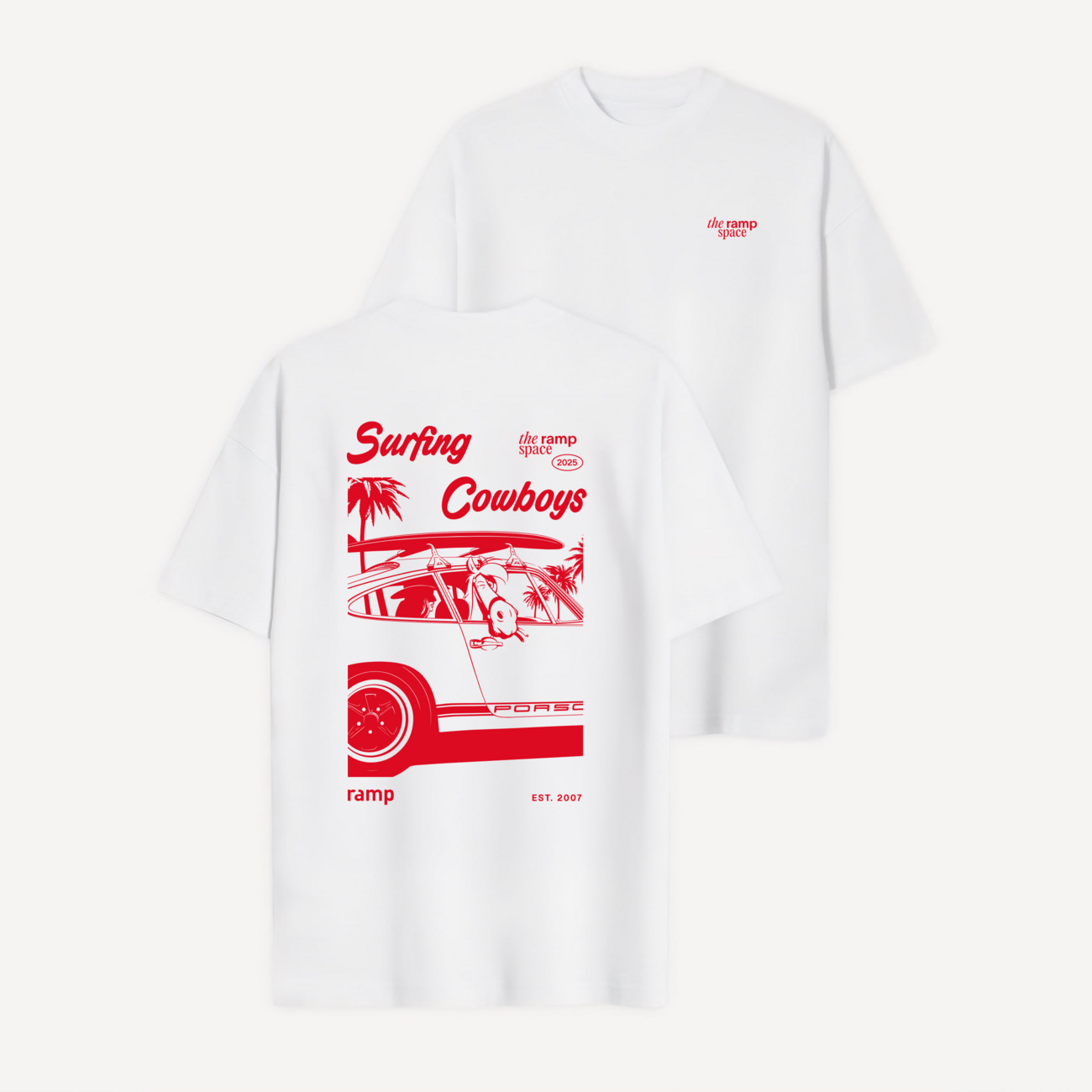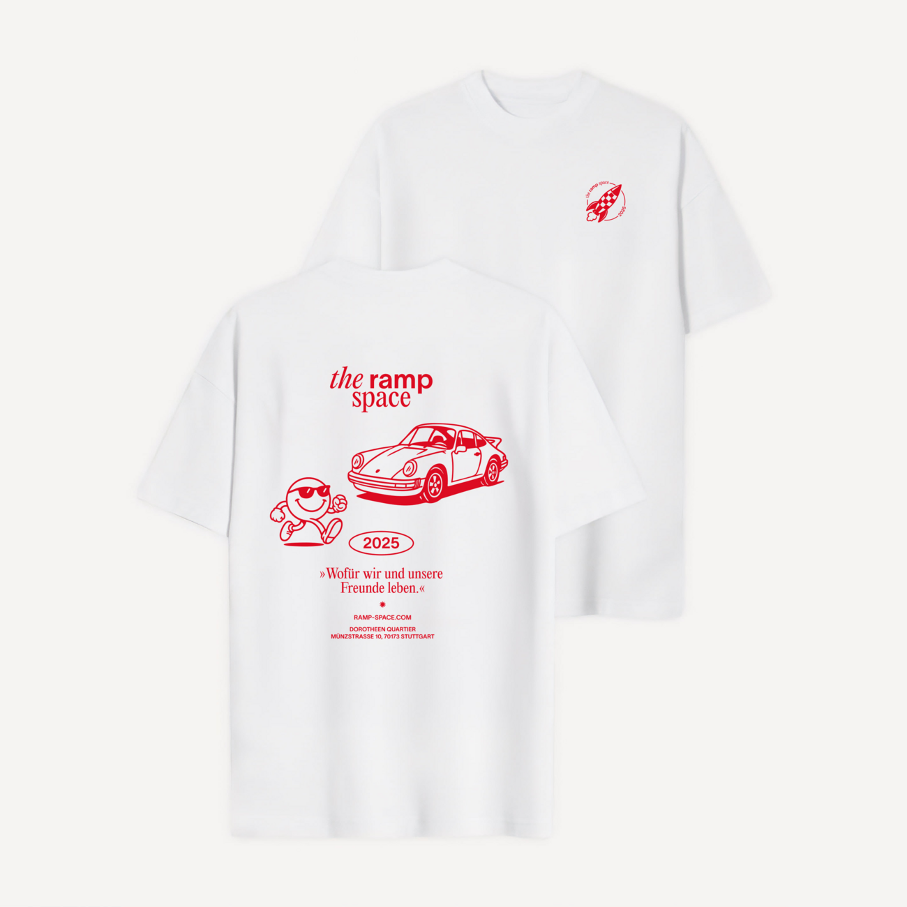 Oscar Wilde sagte einmal: »Man sollte entweder ein Kunstwerk sein oder ein Kunstwerk tragen.« Wir sagen: Wieso nicht gleich beides? Mit der exklusiven »the space Collection« zur Eröffnung von the ramp space wird genau das möglich. Du hast dabei die Wahl zwischen drei T-Shirts: Entweder das lässige »Surfing Cowboys«, das gutgelaunte Shirt mit Smiley und Sportwagen-Print oder das klassisch-schwarze Shirt mit Store-Logo.