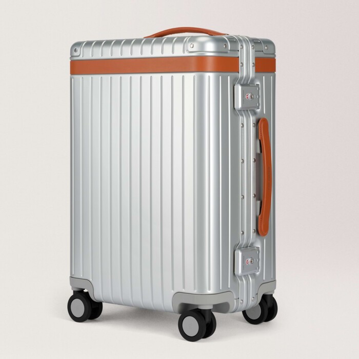 Manchmal darf man es sich auch leicht machen. So wie beim Carl Friedrik Carry-On Aluminium. Nicht nur, weil er aus dem praktischen und gleichzeitig ansehnlichen Leichtmetall Aluminium besteht – sondern auch, weil es einfach passt. Was wir meinen? Optisch bewegt sich der Neue gekonnt im Stil des Mid-Century Modern: Seine zeitlose Ästhetik erinnert an eine Ära, in der Reisen eine Kunstform war, und verbindet die elegante Metallhülle mit pflanzlich gegerbtem Leder. Hier hat man die Wahl zwischen Akzenten in Schwarz, Chocolate und Cognac.