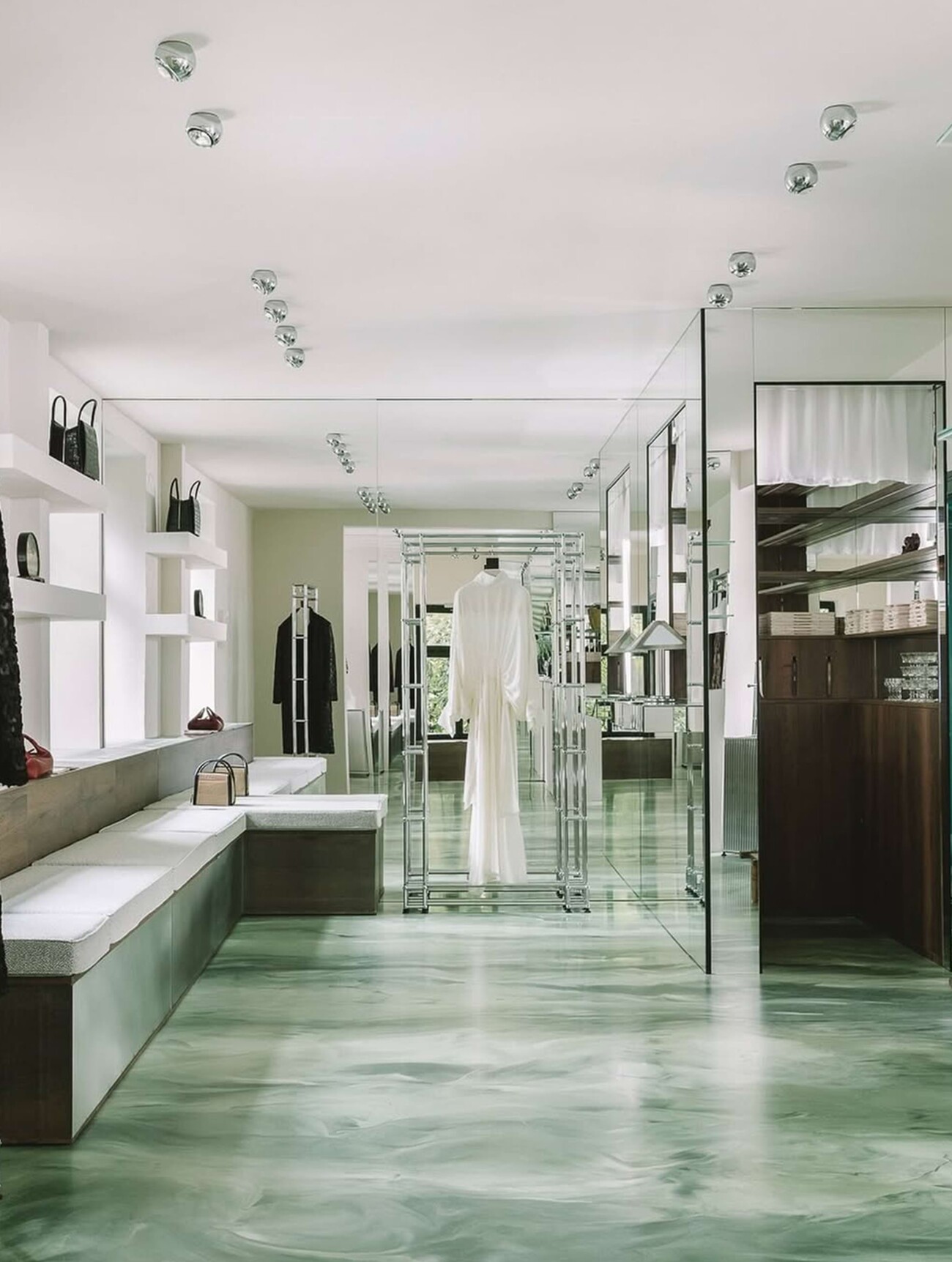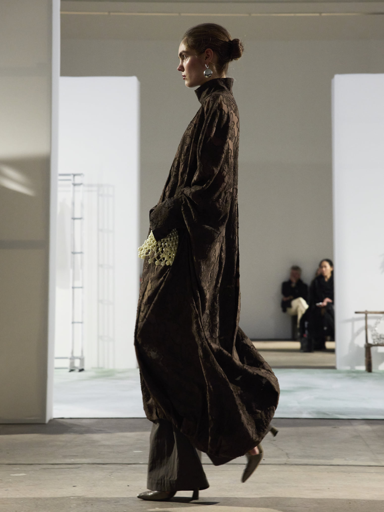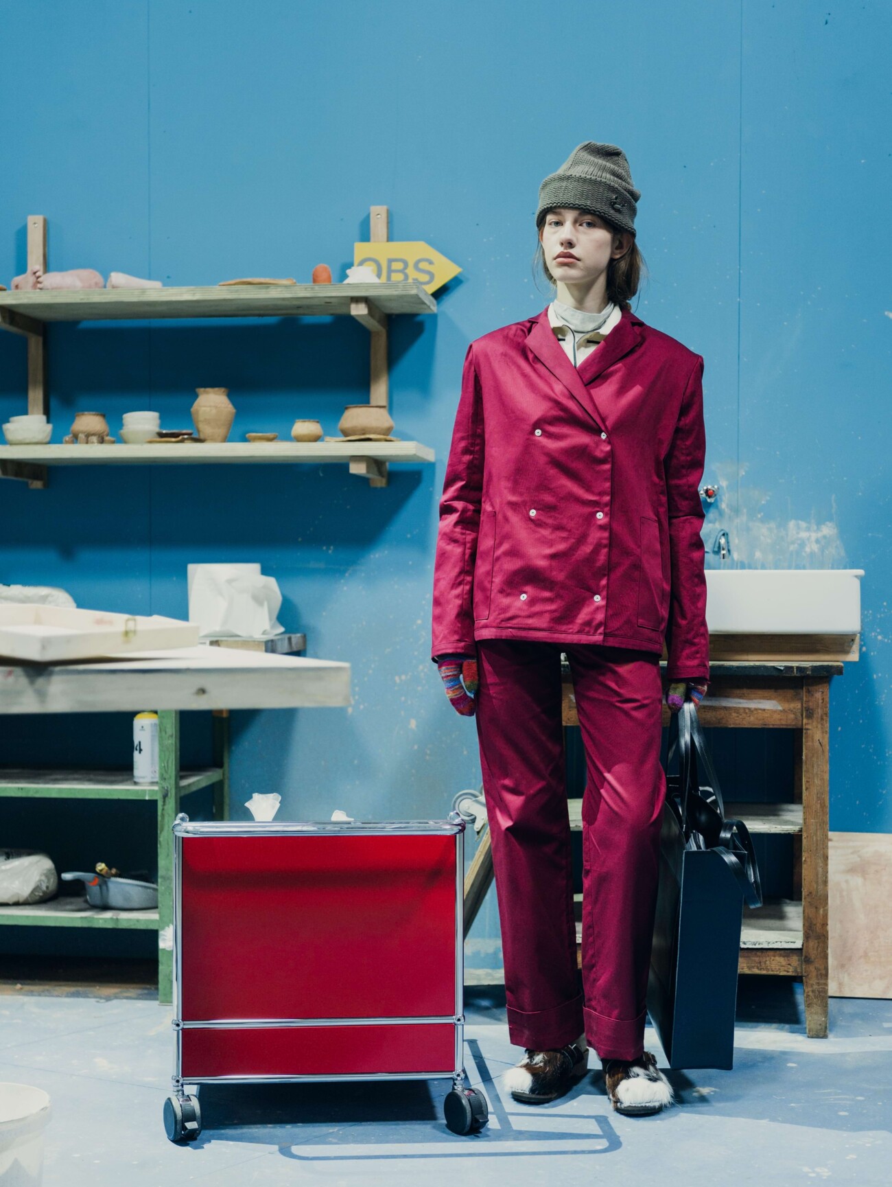 As part of the "Ring the Bell" collection, the two long-standing partners William Fan and USM Haller presented a walk-through catwalk at KW Institute for Contemporary Art, which translated the label's familiar retail experience into the context of the show. Specially designed USM furniture became a central part of the staging and offered a hybrid environment between catwalk, exhibition and retail space.