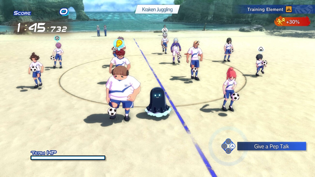 These exploration elements transition smoothly into the actual matches. The core gameplay continues to rely on football infused with roleplaying features. Duels use numerical values influenced by position, elements, and stamina. When two players meet, a short decision phase determines the outcome based on opposing actions. Special moves can be triggered strategically and are often presented with dramatic animations. The system is easy to learn yet flexible enough to shape teams in different ways.